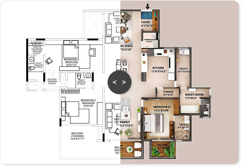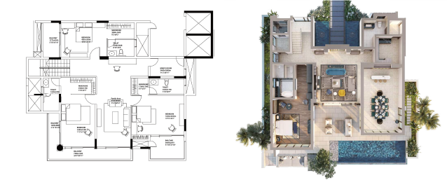 2D floor plans are now essential features in the real estate market. Present customers with a professional floorplan, showcasing house layout with textured floor and furniture.