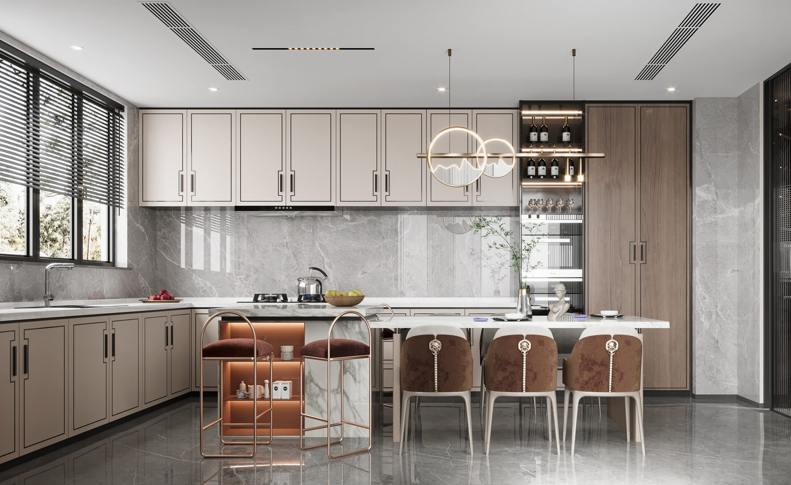 A sophisticated dining room china cabinet features glass doors with LED lighting to showcase fine china, crystal, and collectibles. Solid wood frames and scratch-resistant countertops ensure durability. Lined drawers protect delicate tableware, while the design complements French, 轻奢,or traditional décors for elevated dining aesthetics.