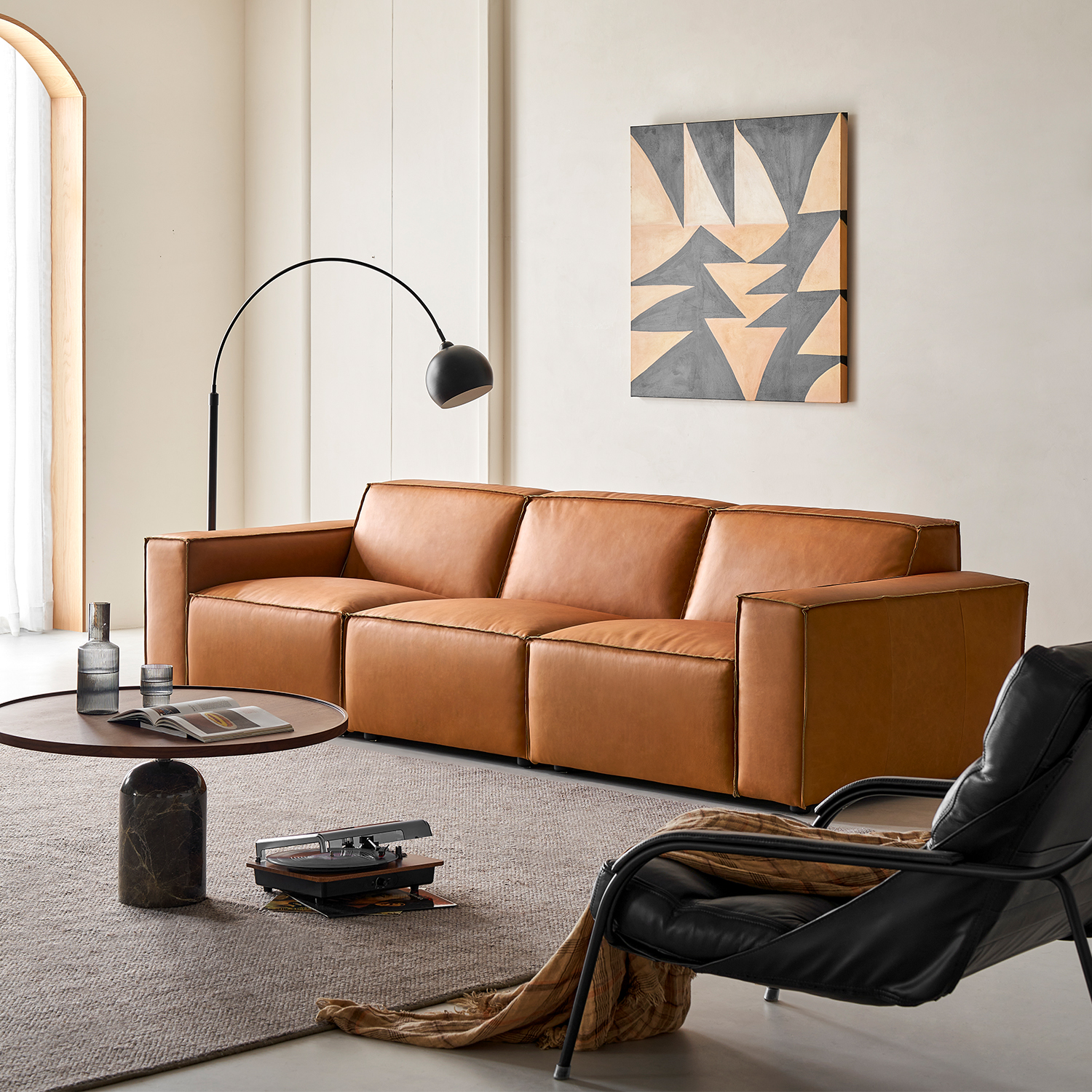 A modular sofa with interchangeable seats creates layouts like straight, L-shaped, or chaise lounges. High-resilience foam and removable covers ensure comfort and easy maintenance. Ideal for living rooms, co-working spaces, or hospitality waiting areas.