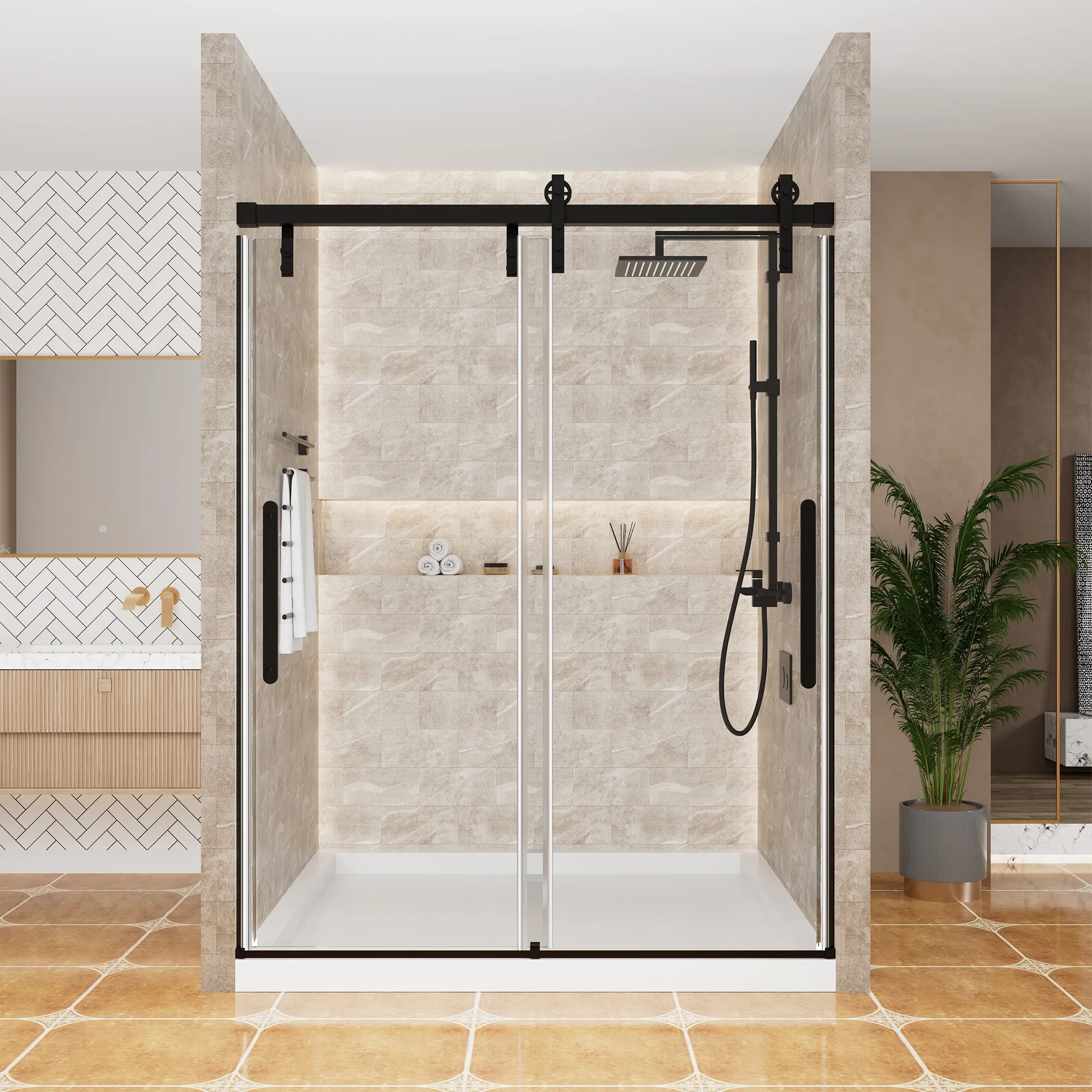 10mm tempered glass panels with smooth magnetic seals and adjustable stainless steel hinges. Customizable sizes (900x900mm to 1500x900mm) suit corner or walk-in configurations. Easy-clean nano-coating repels limescale. Meets ANSI Z97.1 safety standards for impact resistance.