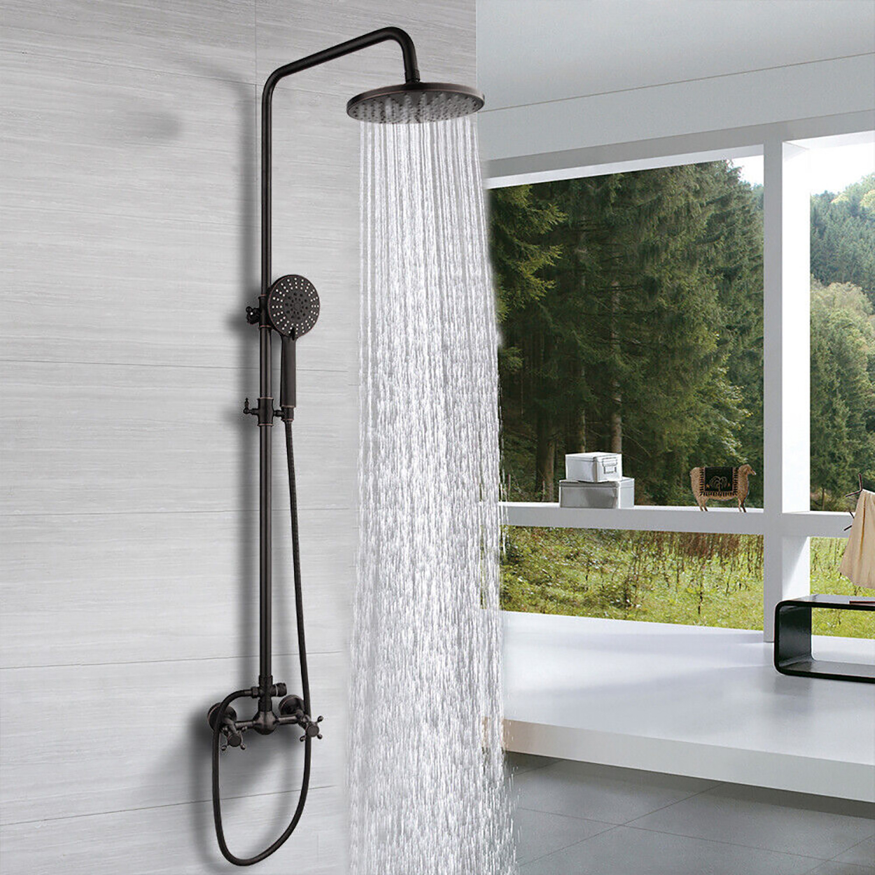 Pressure-balanced valves maintain consistent water temperature (±1°C) even with pressure fluctuations. Choose rain showers, handheld sprays, or body jets in brushed nickel/black finishes. Flow rate: 1.8GPM (WaterSense certified). Includes anti-scald protection and ceramic cartridges for 500,000-cycle durability.