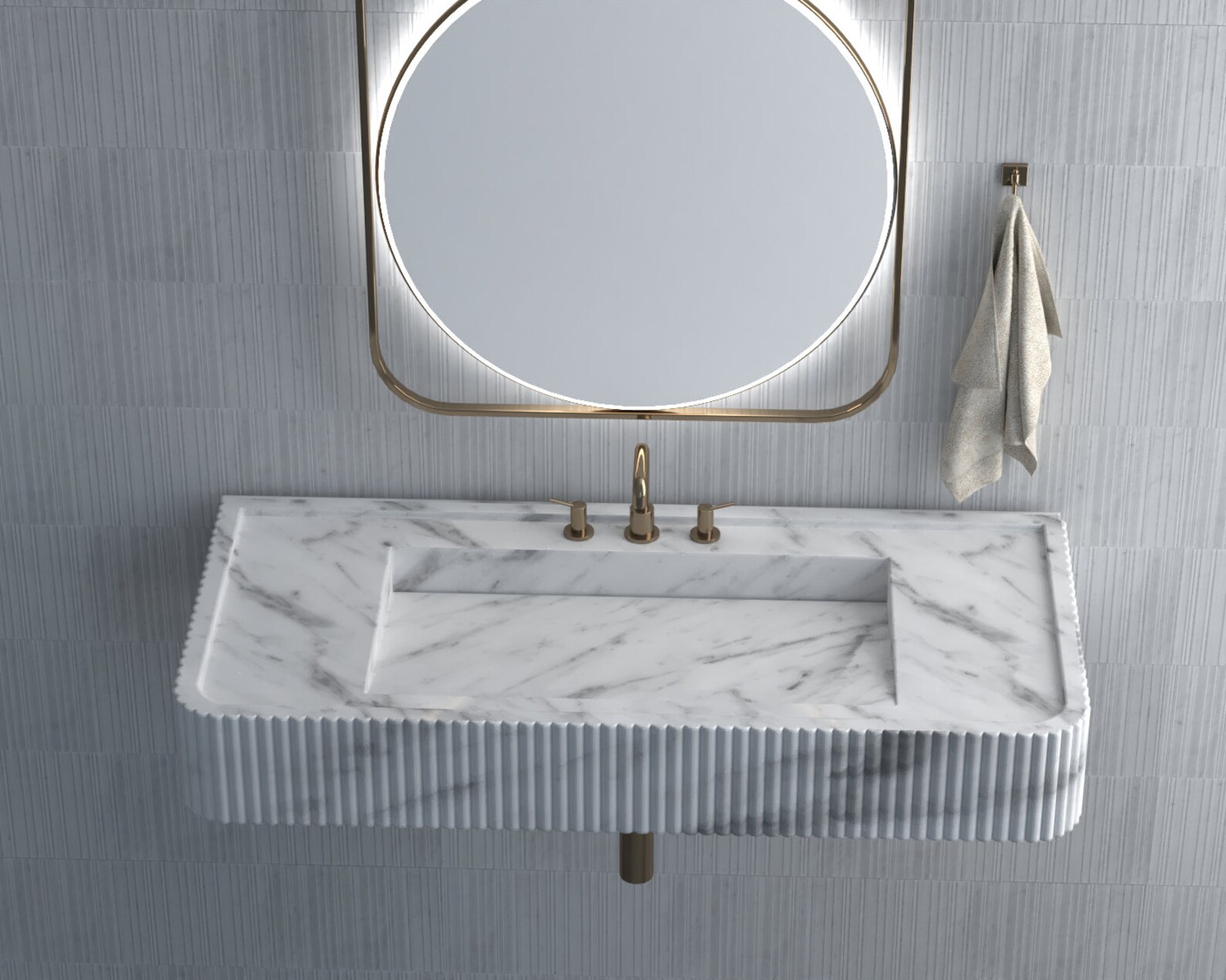 This hand-carved marble sink basin merges utility with artistry. Resistant to watermarks and etching, its sculptural design becomes a bathroom focal point. Pair with matte or glossy finishes for a cohesive look.